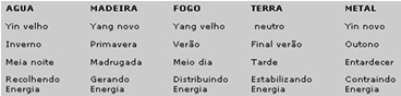 As manifestações da força Yin e Yang na terra, as cinco fases da energia representam vários estágios de vazio e cheio pelas quais essas energias passam ao equilibrar um determinado sistema energético. Um antigo texto chinês diz sobre isto: