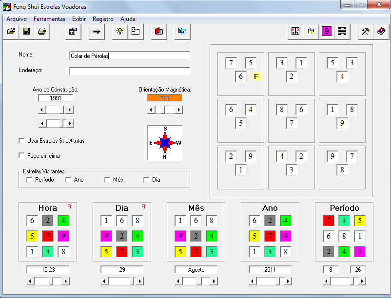 Deparei-me com o histórico de uma casa de um cliente cujo mapa do período 7, com direção SE2, possui formação de Colar de Pérolas. A casa está assentada num terreno com declive atrás. Este declive era seguido por um amplo terreno aberto, sem construções. Portanto, a edificação possuía ÁGUA ATRÁS. Na frente, bem próximo, existe um volume significativo, devido a presença de um prédio de grandes dimensões. Portanto, tem MONTANHA na FRENTE.