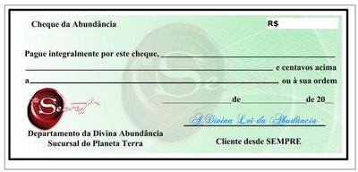 A Lei da Abundância é a crença de que você pode dar a si proprio essa  Abundância. É seu direito! A  Abundância pode vir de muitas maneiras. Este método é concebido para atrair a Abundância de Riqueza. Você vai ter que preencher esse cheque  24 horas antes da lua nova, que simboliza o crescimento. Você vai ter que verificar no calendario porque justamente a lua nova é aquela que você não vê.