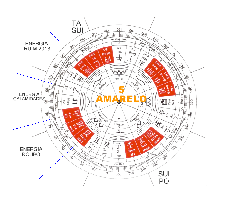 No Centro este ano a  Estrela 5 Anual é a mais temida, denominada também Diabo da Ferocidade. Este ano ela está de volta ao seu lugar de direito, o Centro. Isso poderá causar calamidades, falências,obstáculos e acidentes.  Não é aconselhável perturbar essa energia com barulho, obras, escavações, martelar de pregos, etc.
