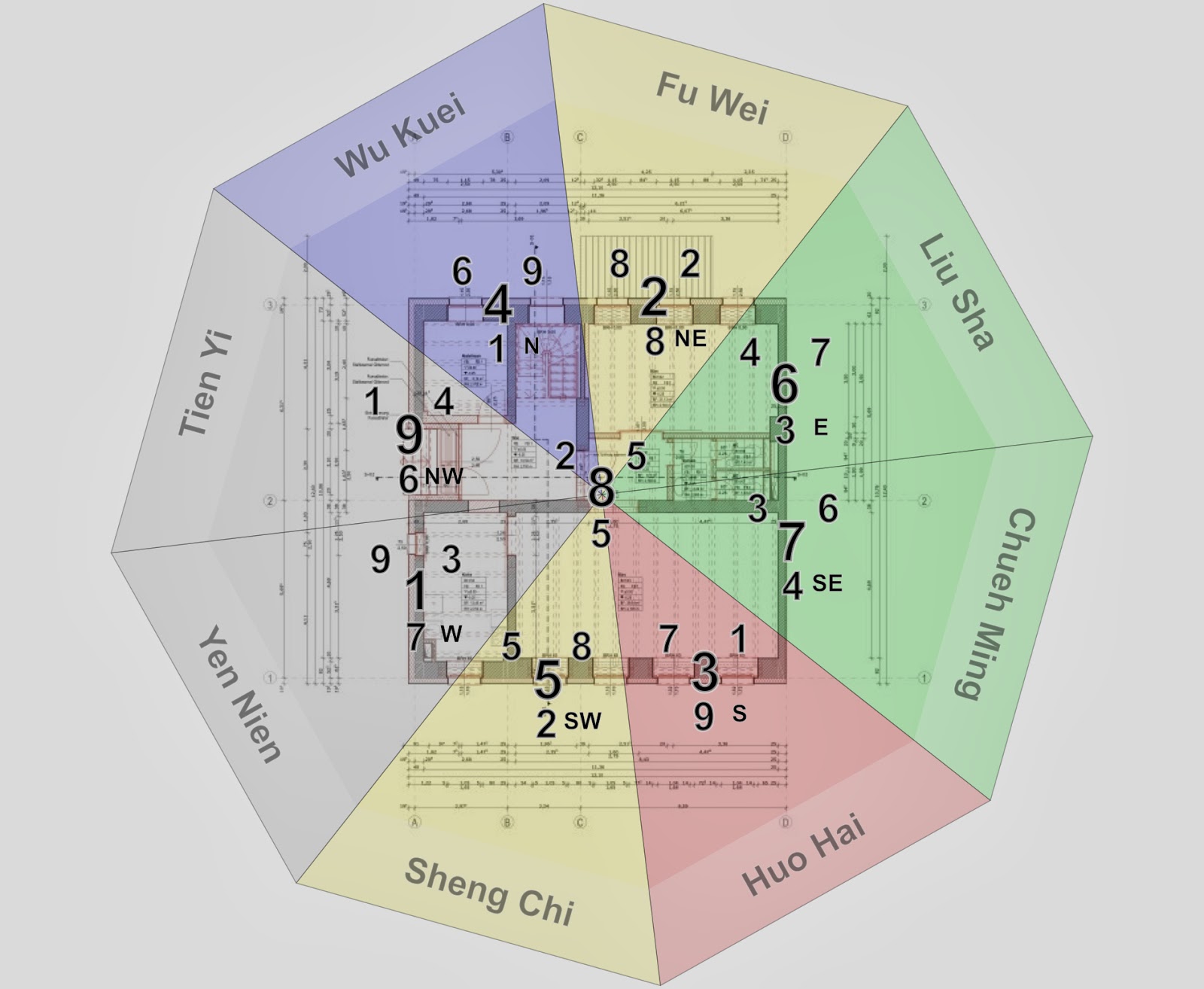 Baseados nesse ciclo, na direção mais yang da fachada, na data de cobertura desse imóvel  e no local onde ele está situado podemos fazer um mapa (há até  um software que calcula isso) e ver os tipos de energias presentes, como se combinam entre si e se elas estão  gerando coisas boas ou ruins. É claro que é preciso conhecimento e experiência para interpretar o que é criado nesses encontros.